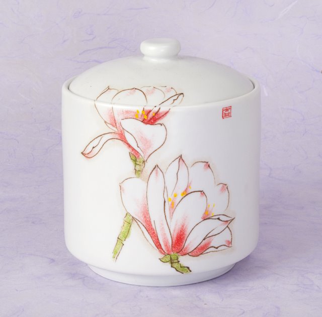 This is a unique and beautiful high quality porcelain jar features lotus flower one side. With a simplistic design, you can use it to hold anything you like, tea, sugar, spices, and many other items. A great home decor while it is useful for every household. Available in small or large sizes.