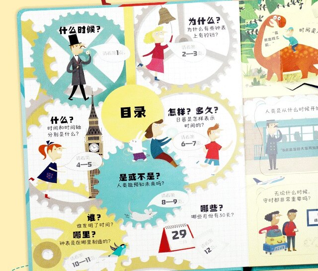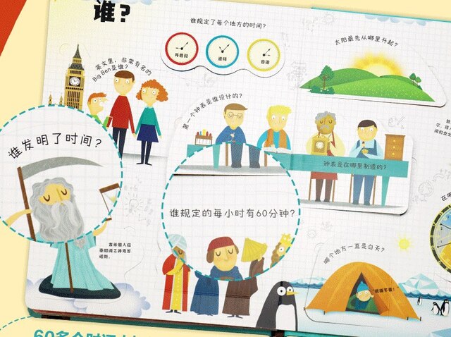 《时间》这本书中有超过60个关于时间的小知识,比如时间是从什么时候开始的;为什么感到无聊时,会觉得时间过得更慢;为什么一年又365天;谁规定了每个地方的时间;太阳*先从哪里升起。有趣的问题满足并激发孩子的好奇心,帮助他们认识时间的同时体悟时间的变化和流逝。