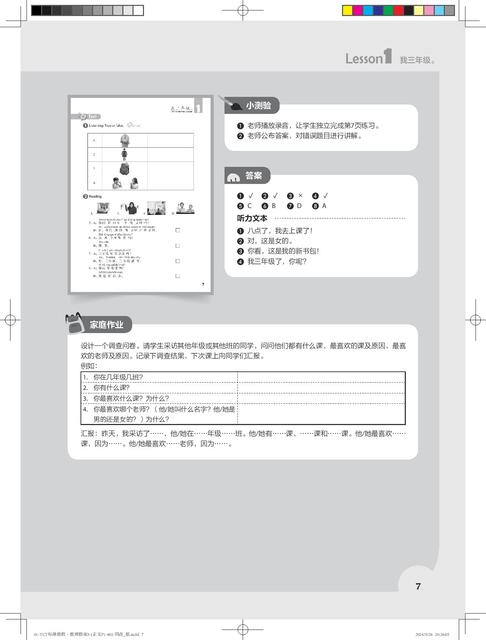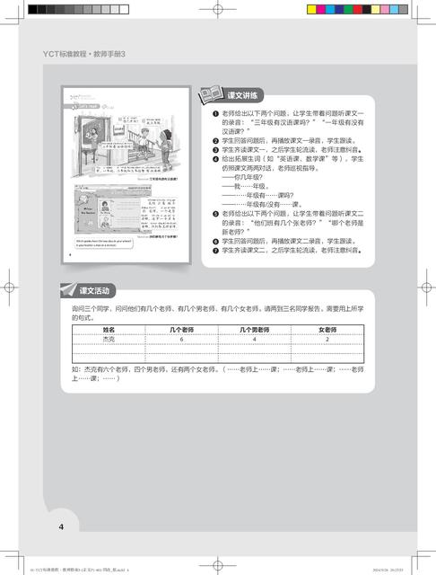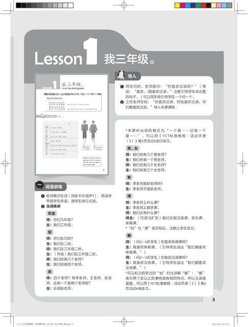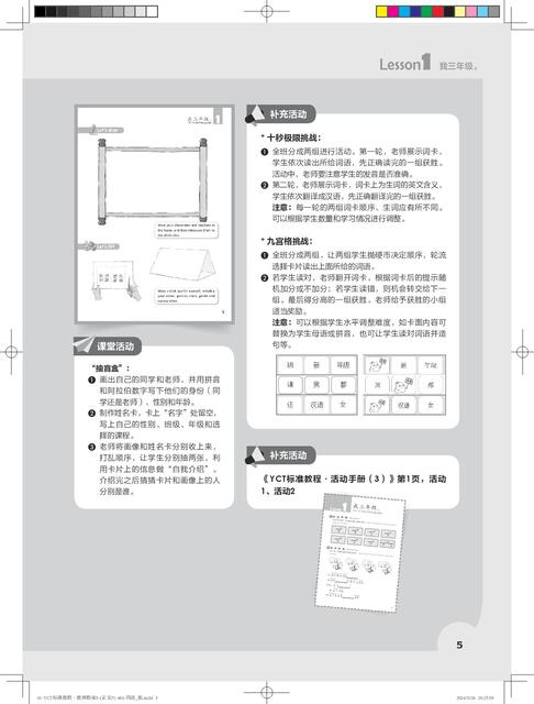 《YCT标准教程·教师指南》共6册,对应《YCT标准教程》1—6册。本书是对应教材第1册的教师参考书,共11课,对应教程的热身、生词、课文、活动、练习、测试等版块,提供了常用的教学方法、教学目标、教学步骤、小测试、参考答案、教具等,为教材使用者提供了备课方案和素材。为了方便教师使用,书中还提供了补充活动,并附有各种活动页,教师可以直接复印使用。