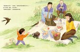 都说“清明时节雨纷纷,路上行人欲断魂”,清明并非是悲伤的,对于虎子尤其如此。可以在春光里回到爷爷和爸爸的故乡,一家人在春光里踏青、插柳、放风筝、打秋千……哪一样孩子不喜欢!唯独祭祖,虎子好奇,一家人在故地说起了“远和近”的话题。“太爷爷”离虎子有多远?又有多近?远到从来也没有见过,远到“在天上”;近到他是“爸爸的爷爷”“爷爷的爸爸”,近到一直陪伴着自己。故事用清明的杨柳和风筝为寓,让孩子们正确看待“逝去的祖先”,感悟血脉的传承。