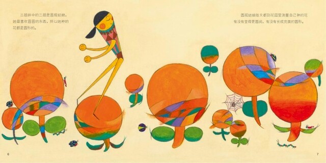 《三姐妹》作者巧妙地将直尺、圆规和三角板化身为三姐妹,将小读者带入一个奇妙的大花园里,为他们讲述了一个引人思考的故事。故事中,大姐直尺、二姐圆规和妹妹三角板各自认为自己种的长方形、圆形和三角形的花是美的,并因此发生了激烈的争执,发展到筑起高墙谁也不肯理谁,结果她们却越来越不快乐。变成蝴蝶的毛毛虫像光一样启发了三姐妹,在它的帮助下,三姐妹认识到“方有方的美,圆有圆的妙,三角形有三角形的俏。多种美丽并存,世界才会更加丰富多彩”。