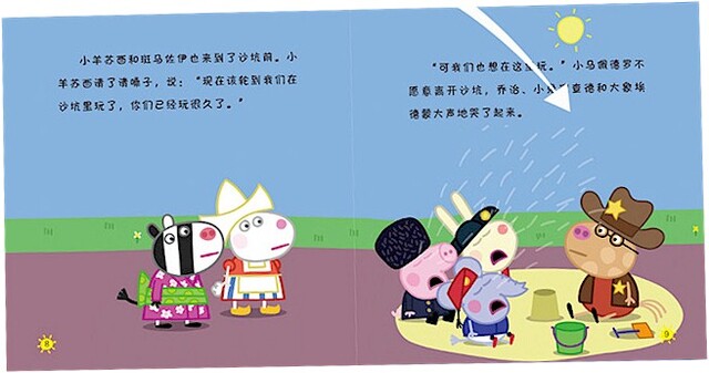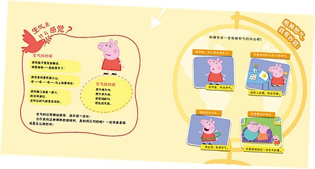 《我的堂姐克洛伊》:堂姐克洛伊来了,佩奇、乔治和克洛伊一起玩起了游戏。游戏过程中佩奇不太开心,她感到很委屈。故事的最后,佩奇和大家一起玩起了最爱的跳泥坑游戏,她的心情好多了。本书将帮助小朋友正确认识“委屈”这种情绪,并学会面对的方法。