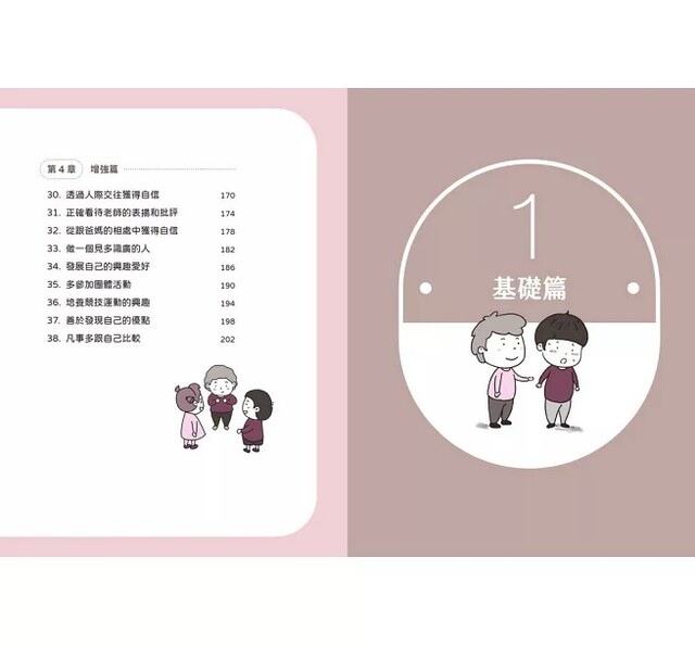 每一章開頭從趣味漫畫場景切入問題,使讀者融入情境一同思考,抉擇如何應對;每篇的實例練習,搭配可愛插圖輔助說明。井然有序的版面視覺動線,與淺顯的語言,引導讀者清楚理解內容,可愛角色點綴其中,如同朋友或師長一樣在旁溫馨陪伴。